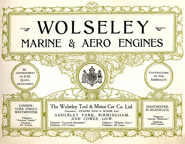 Brochure promoting Wolseley Tool & Motor Car Company’s marine and aero engines, 1910
